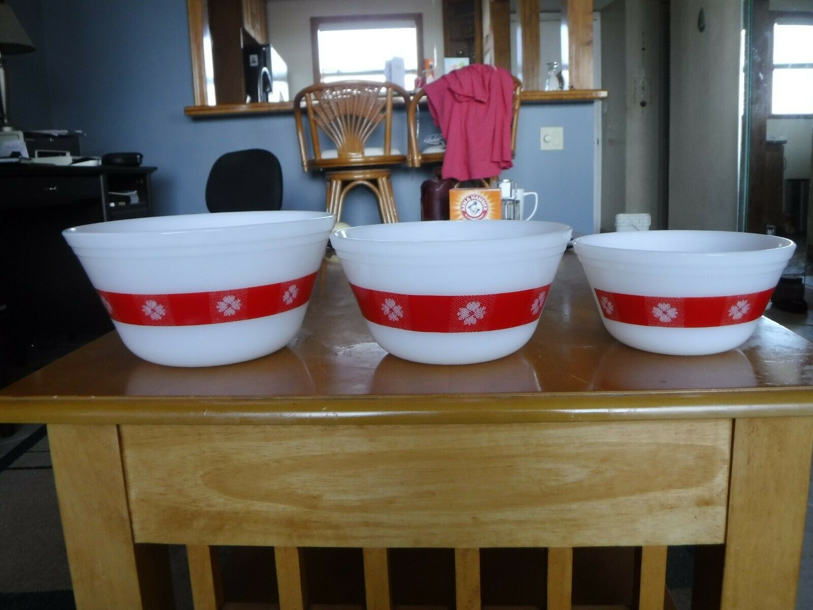 Title (ebay affiliate link): VINTAGE FEDERAL RED GINGHAM MILK GLASS NESTING MIXING BOWLS SET OF 3