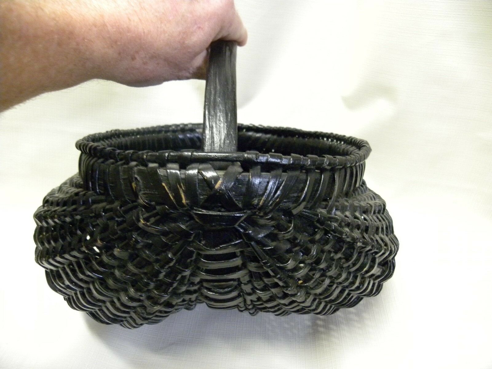 Primitive Old Split Oak Buttocks Egg Basket in Black Paint