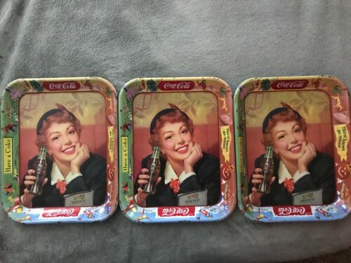 Title (ebay affiliate link): Lot of 3 Vintage 1953 Coca Cola "Menu Girl" serving trays