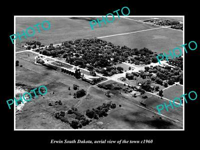 OLD LARGE HISTORIC PHOTO ERWIN SOUTH DAKOTA, AERIAL VIEW OF THE TOWN c1960