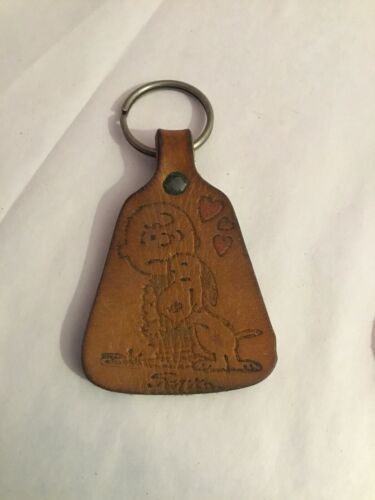 Title (ebay affiliate link): Vintage Leather Charlie Brown & Snoopy Keychain - Comic Schulz
