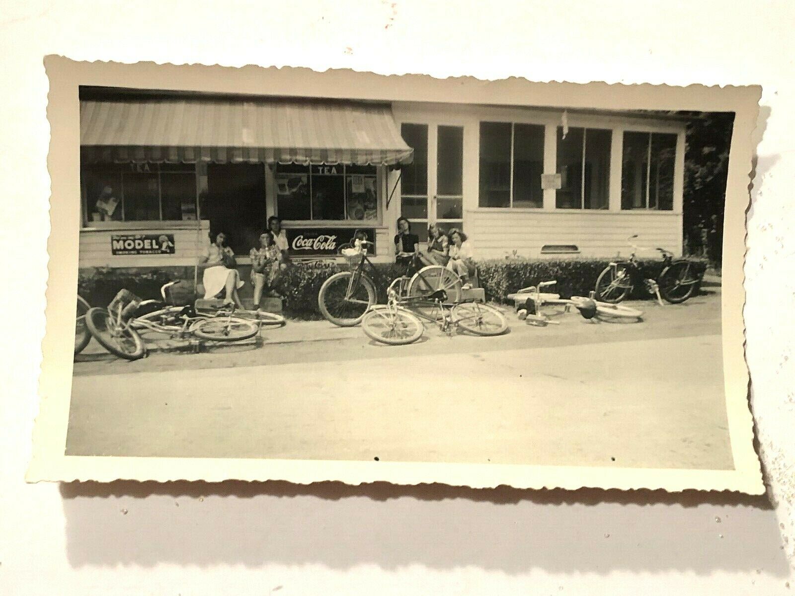 1950''s Photo Girls Outside Lunchroom Bicycles Drinking Soda Coca-Cola Sign Model