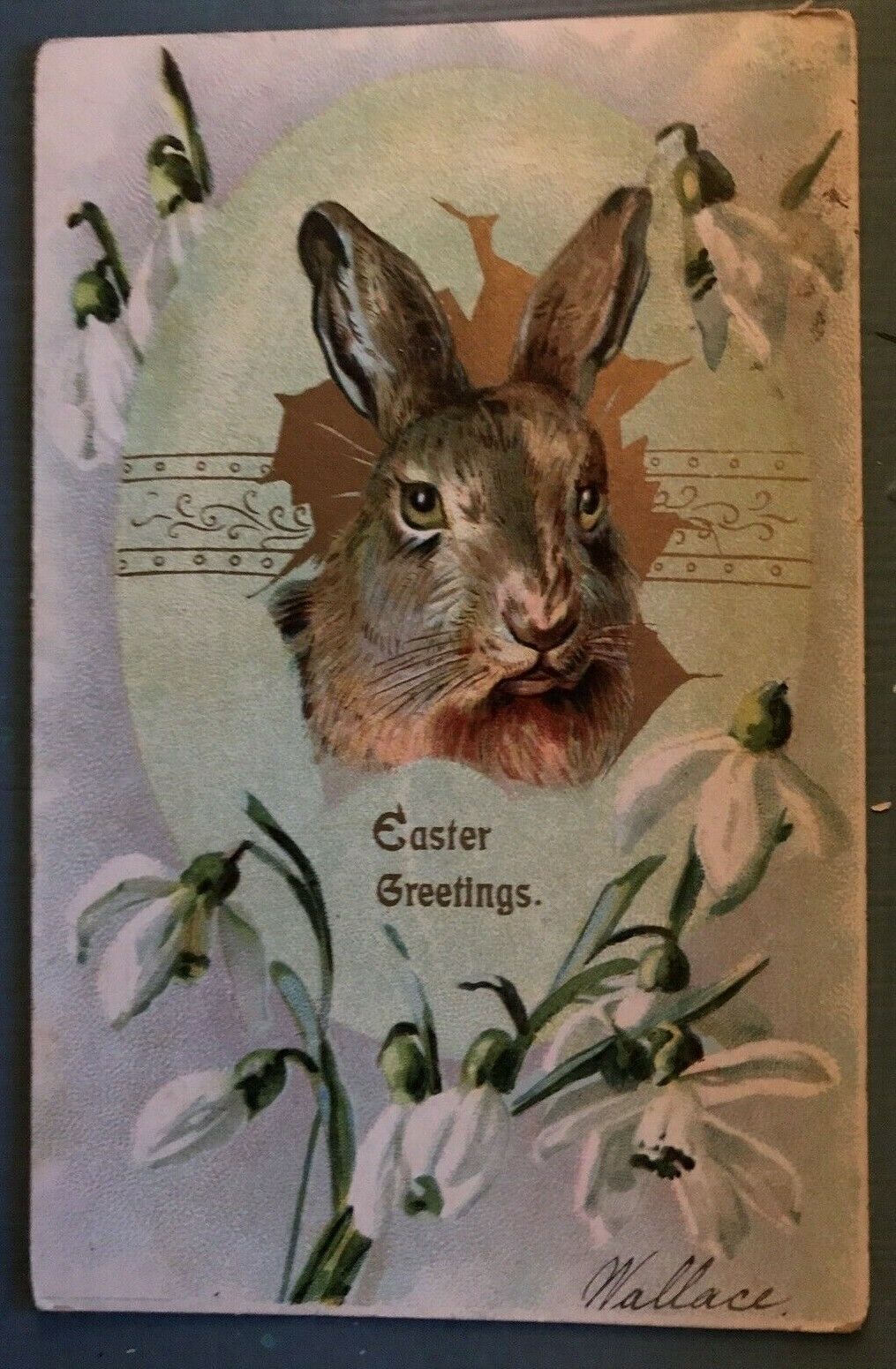 Title (ebay affiliate link): Antique Easter Postcard-Brown Bunny Rabbit & Snowdrop Flowers-1906-b51