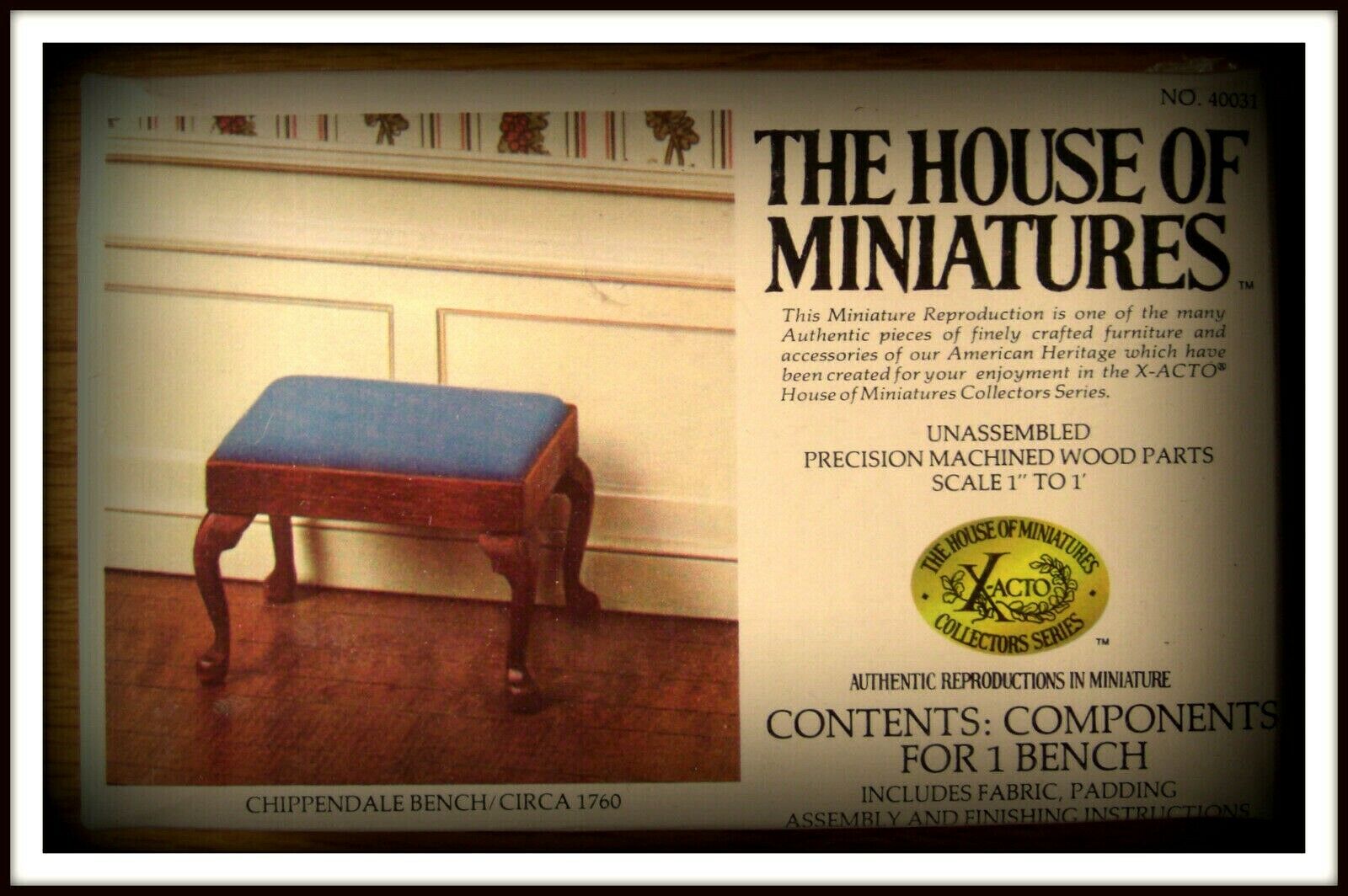 Title (ebay affiliate link): DOLL HOUSE OF MINIATURES CHIPPENDALE BENCH KIT, CHARMING ANTIQUE REPLICA