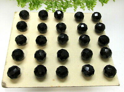 25 MATCHING ANTIQUE FACETED BLACK GLASS BALL DOLL CLOTHES BUTTONS ON CARD A131
