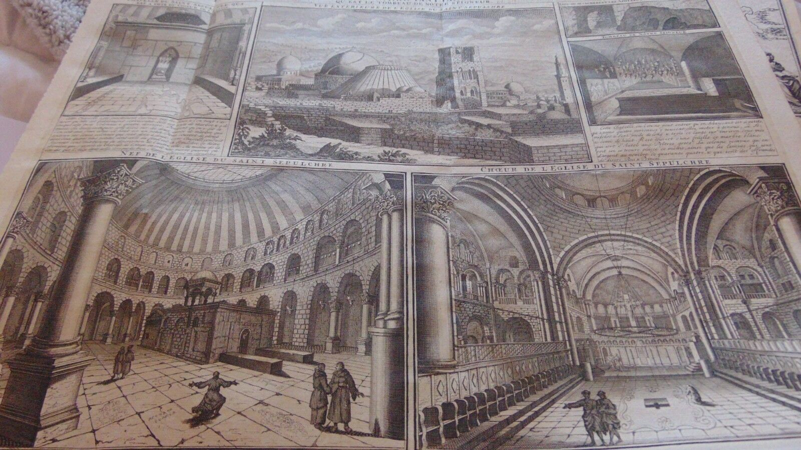 1720 ORIGINAL COPPER ENGRAVING VUE & DESCRIPTION DE L''EGLISE DU SAINT SEPULCHRE