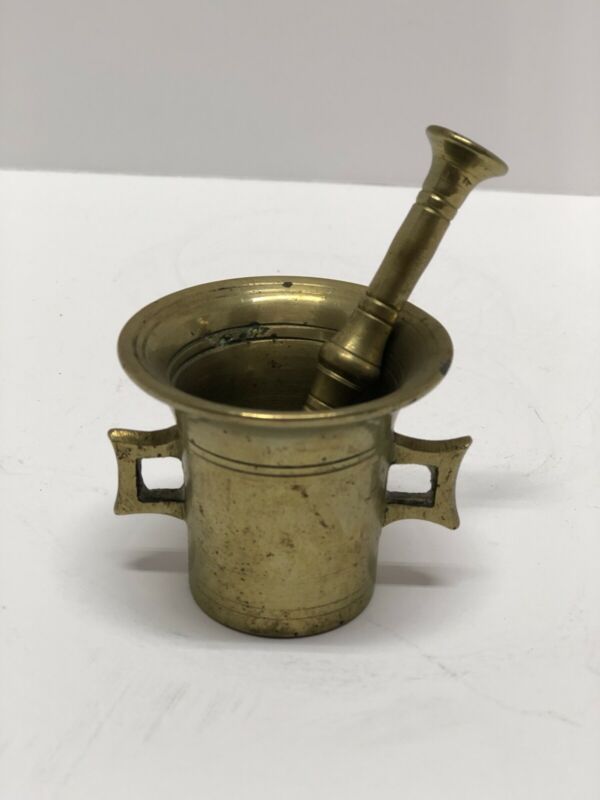 Title (ebay affiliate link): Antique Brass Apothecary, Mortar and Pestle, Pill Crusher