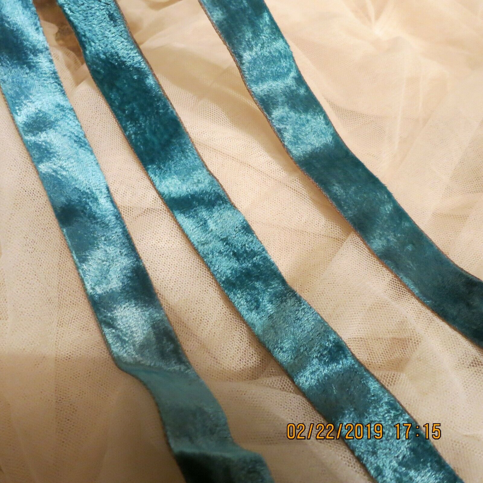 VINTAGE SILK VELVET RIBBON RARE TEAL DOLLS QUILTS 40 7/8''WD VR33
