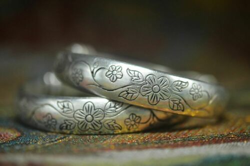 Title (ebay affiliate link): Ethnic style Seedling Silver Retro Handmade jewelry Carved flower bracelet