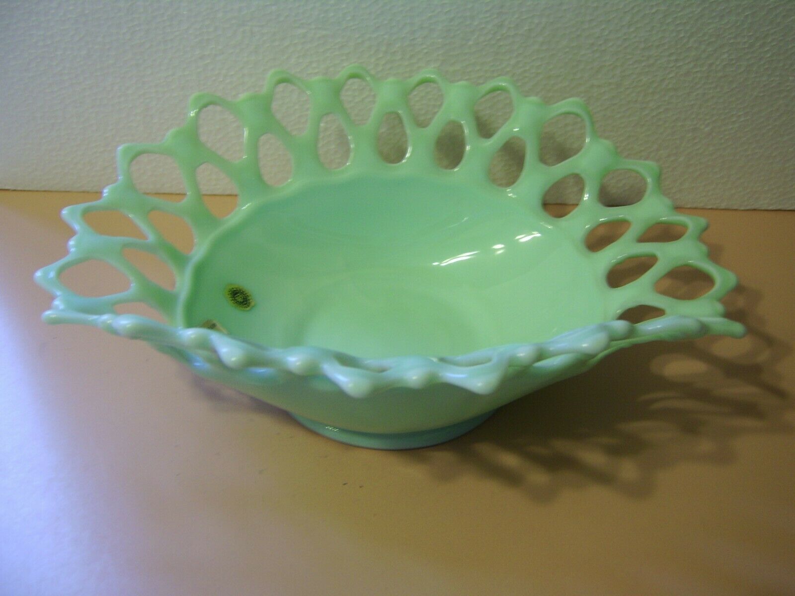 VINTAGE WESTMORELAND GREEN JADE MILK GLASS OPEN LACE SERVING DISH / CENTER PIECE
