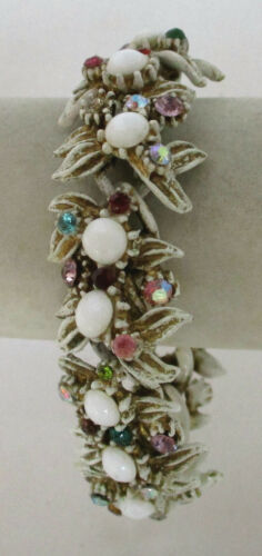 Title (ebay affiliate link): Vintage White-Gold Enamel/Rhinestone/Milk Glass Cab Bracelet Florenza