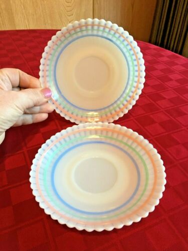 2 Vintage White Milk Glass Plates Translucent Blue 5 3/4" Depression Glass