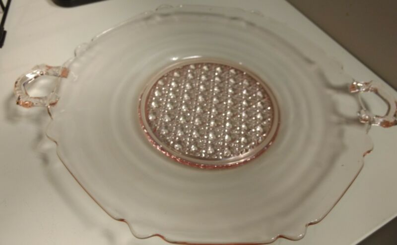 Lancaster Pink Depression Glass Octagon Handle Serving plate Cane Bottom Pattern