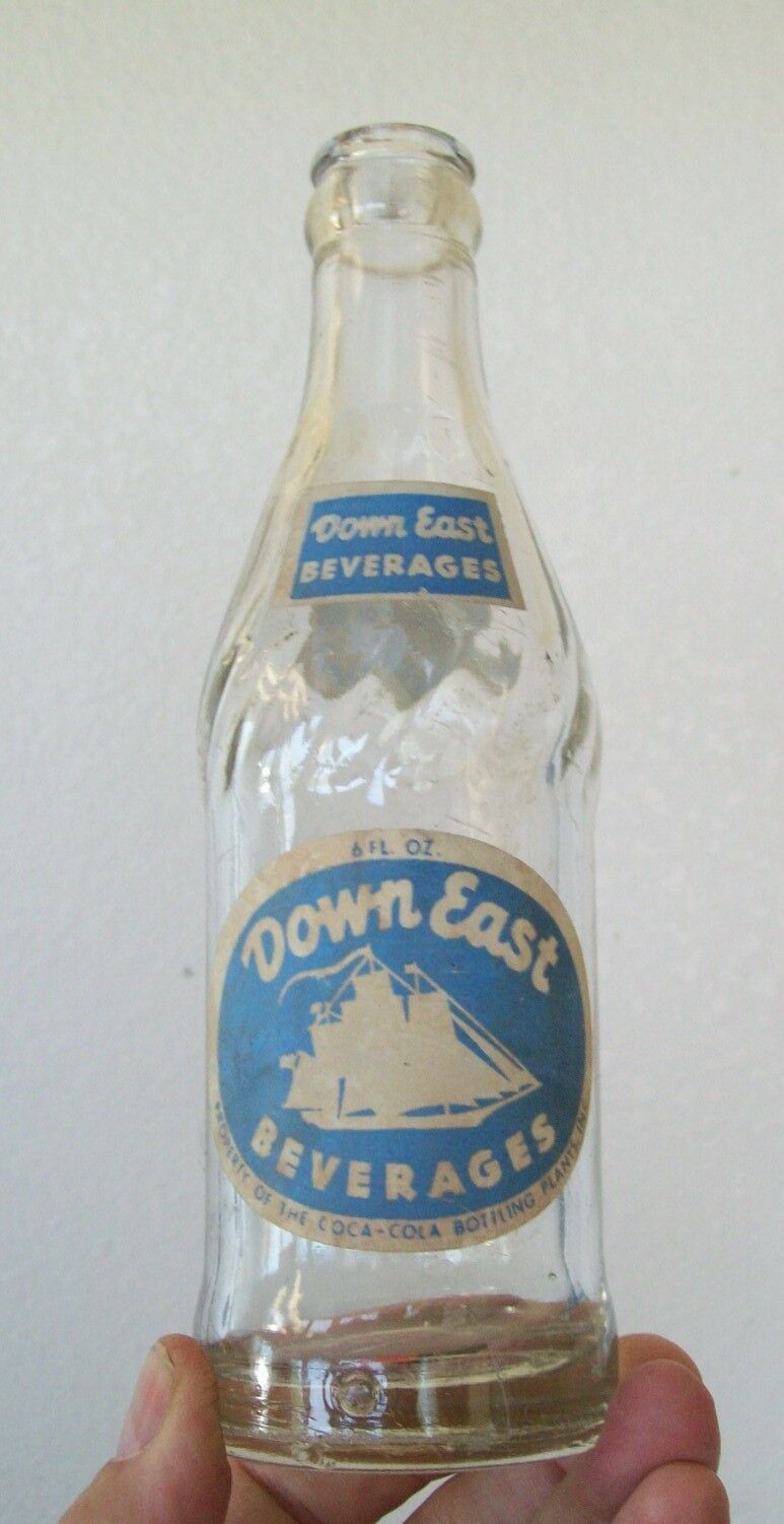 VINTAGE COCA-COLA BOTTLING ACL DOWN EAST SODA BOTTLE W/ SAILING SHIP