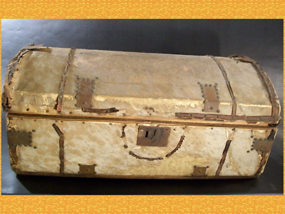 ANTIQUE VTG TRUNK CHEST CASE COWHIDE COW HAIR 1838