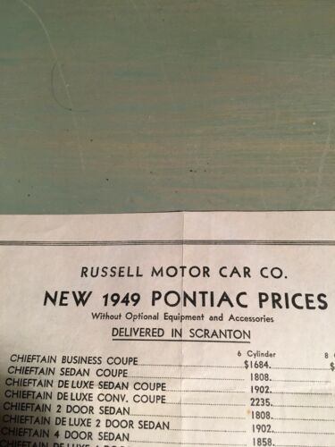 Title (ebay affiliate link): Vintage 1949 Pontiac Prices Russell Motor Car Company Scranton Price Sheet