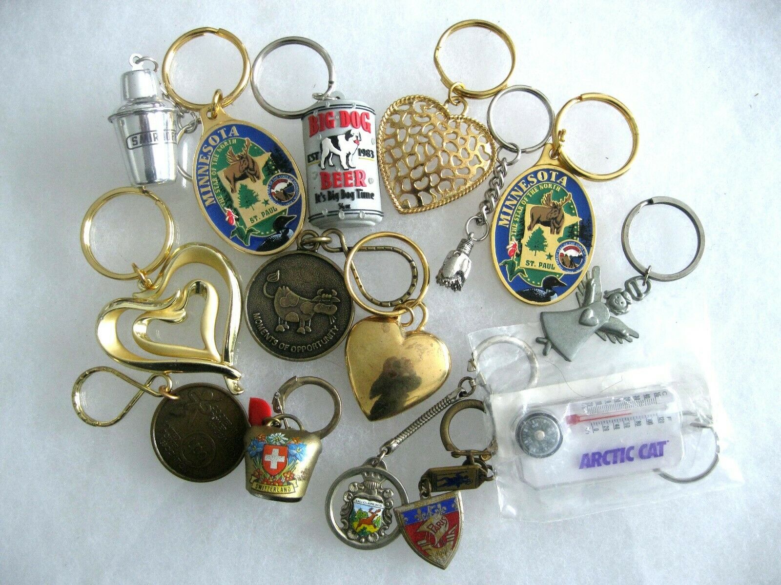 Title (ebay affiliate link): Vintage Keychain Lot 15 Switzerland Paris Arctic Cat Big Dog Beer Smirnoff