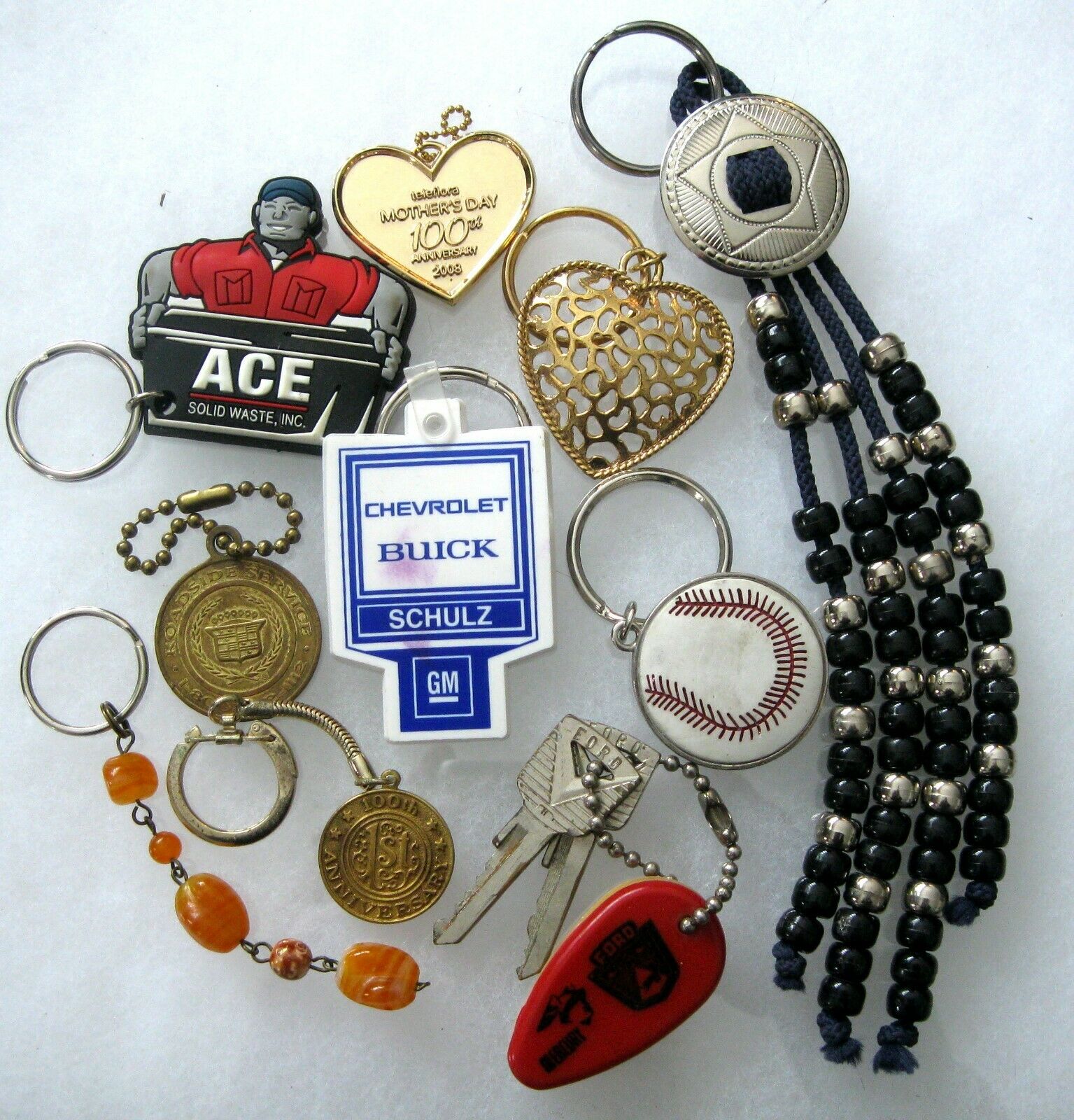 Title (ebay affiliate link): Vintage Keychain Lot 10 Ford Concho Baseball Cadillac Roadside Service Chevrolet