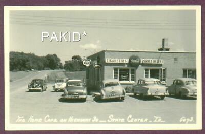 Title (ebay affiliate link): RPPC HOME CAFE HIGHWAY 30 STATE CENTER IOWA COCA COLA BUTTON SIGN