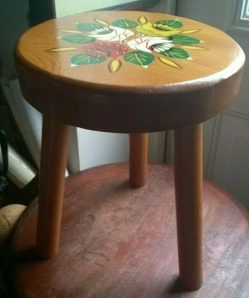 Title (ebay affiliate link): vintage wooden round milking stool - CANAL WARE BARGE ART