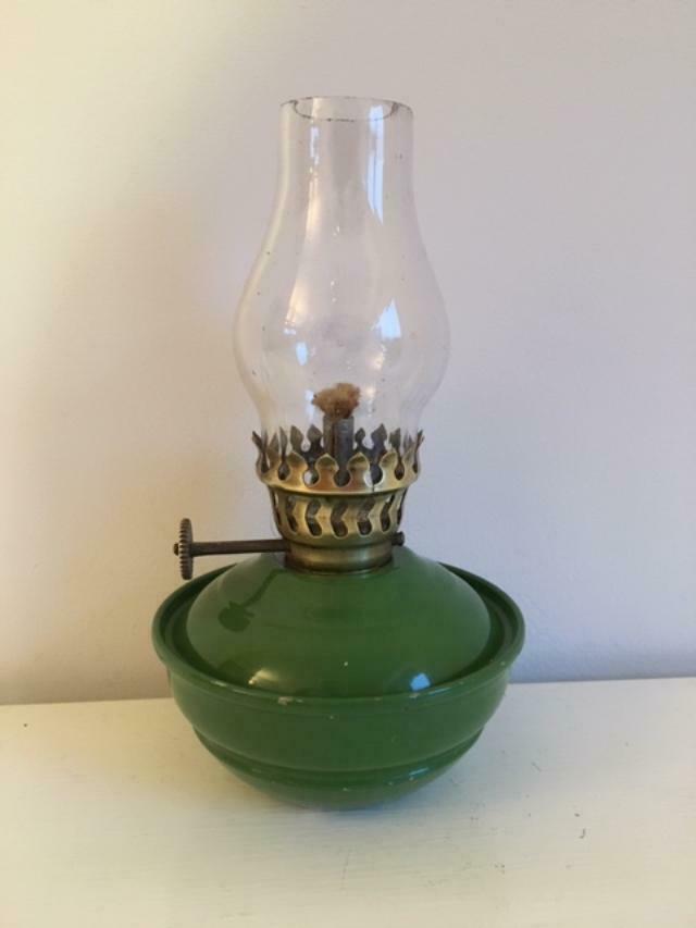 Title (ebay affiliate link): Vintage green enamel and brass Kelly / Nursey Lamp with weighted base