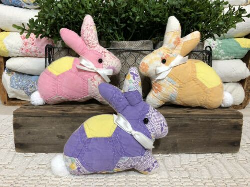 Title (ebay affiliate link): BB#605- Set of 3 Baby Bunnies - Vintage Quilt - Basket Filler - Easter - Spring