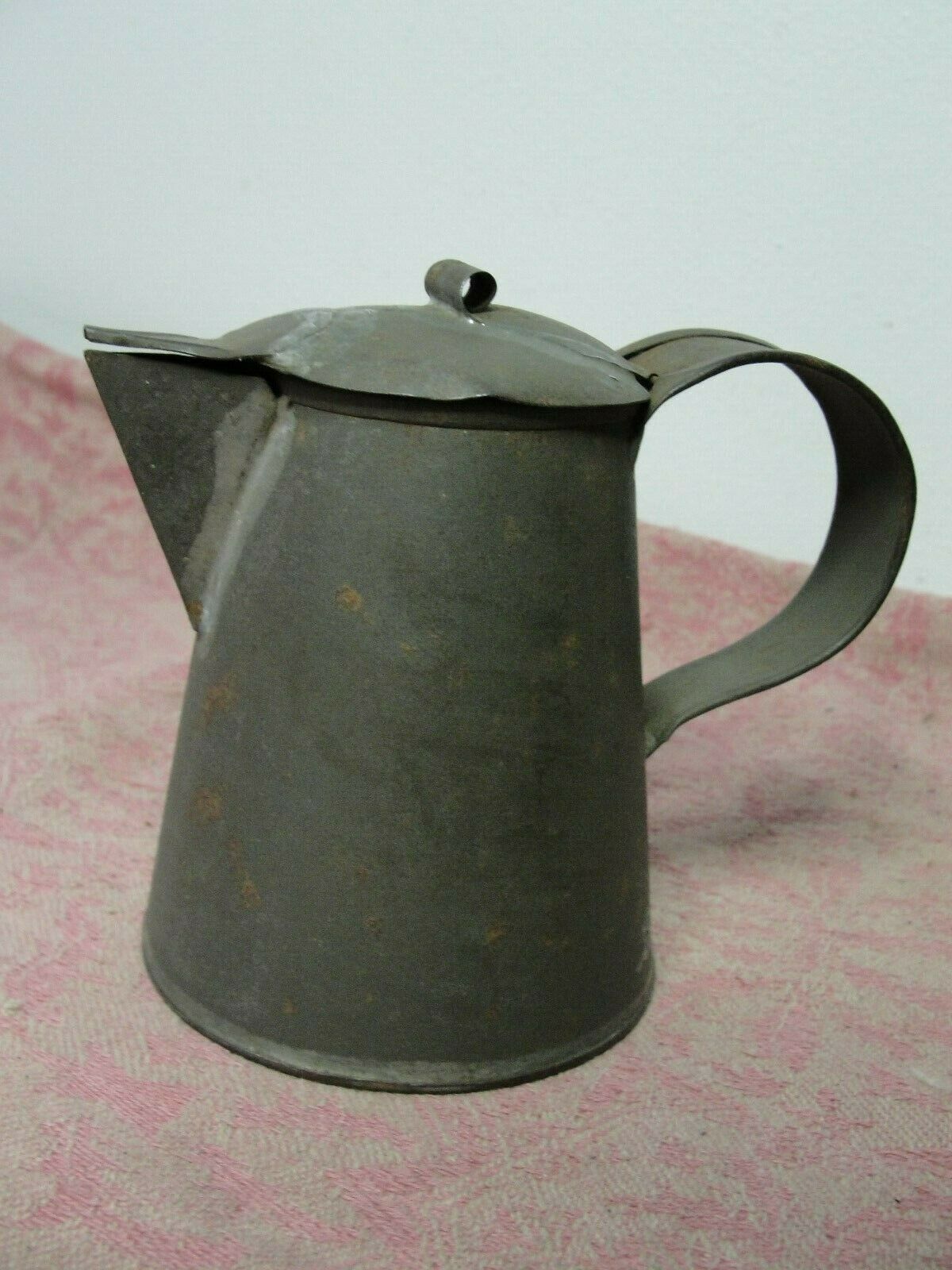 Title (ebay affiliate link): Antique Primitive 1800''s Tin Teapot Coffe Pot Soldered Tinware