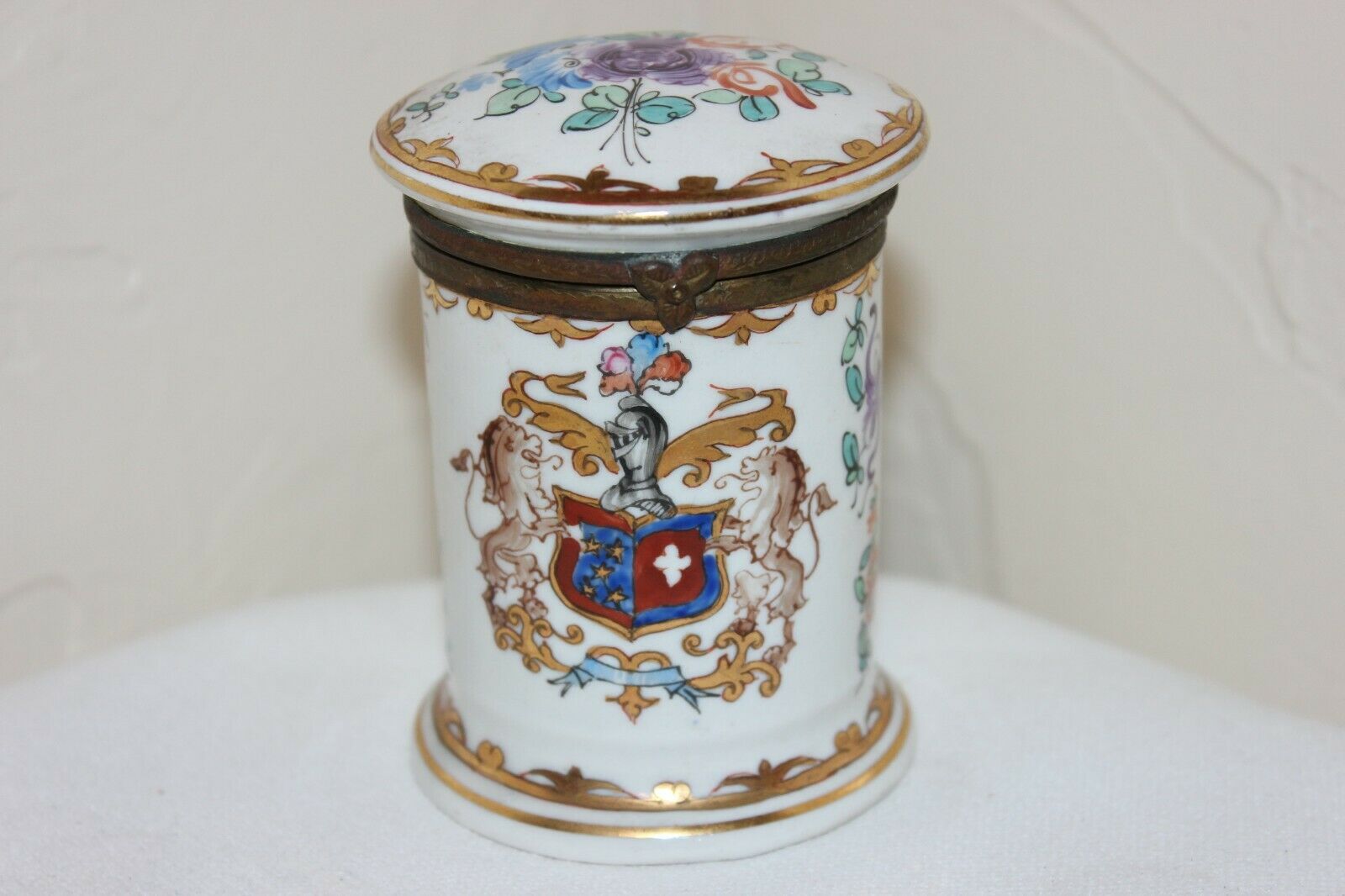 Rare Hand Painted Hinged Cylindrical Cigarette Porcelain Container, Trinket Box