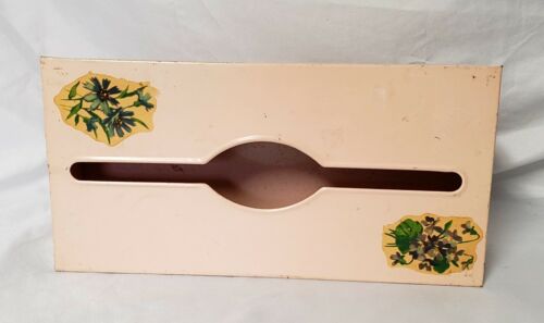 Title (ebay affiliate link): Vintage Retro Pink w/flowers Metal Tissue Box Holder Table/Wall Mount