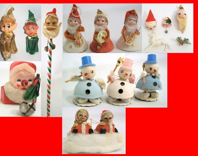 VTG CHRISTMAS FIGURES MICA SANTA PIN SNOWMAN ELVES LOT