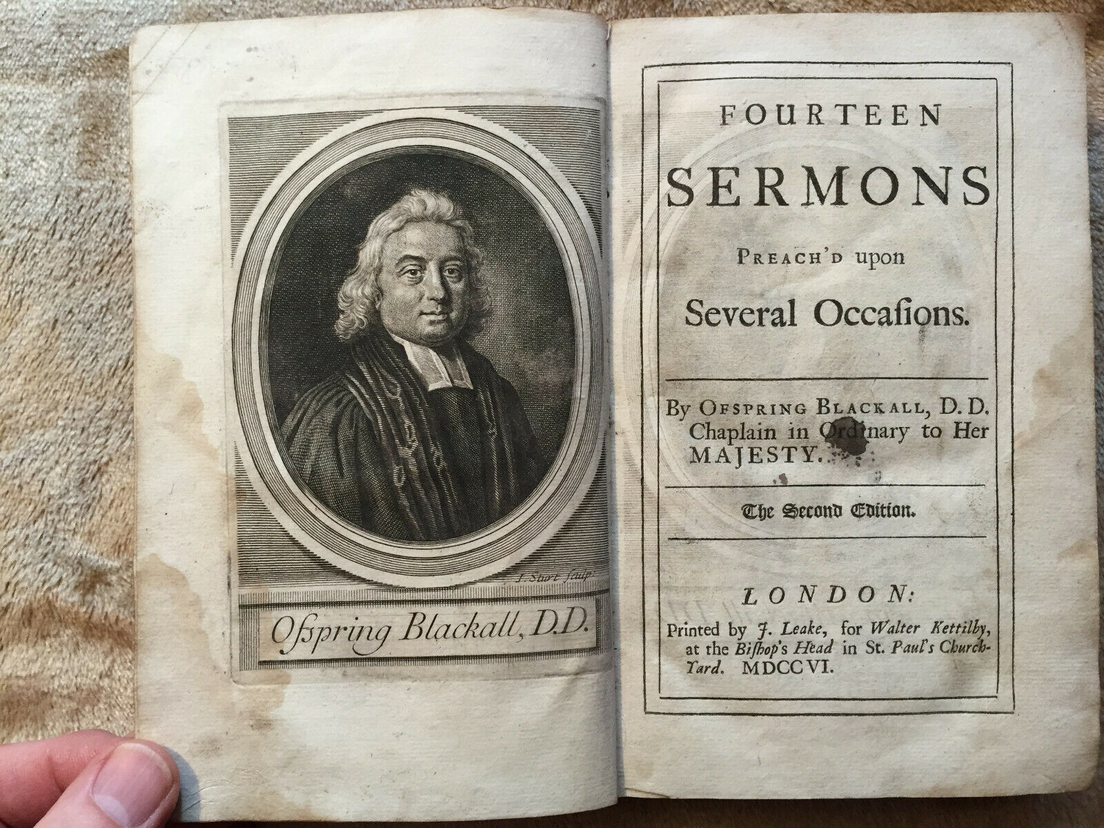 Title (ebay affiliate link): 1706 Fourteen Sermons Preach''d on Several Occasions by Ofspring Blackall-2nd Ed