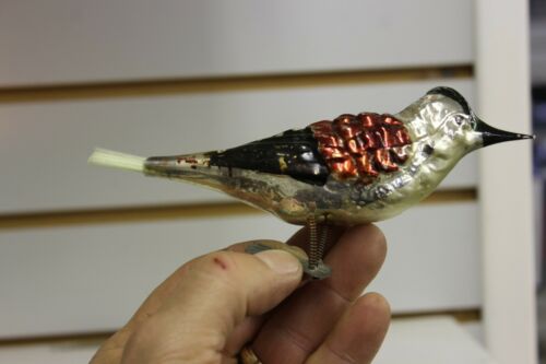 Antique German Mercury Glass BIRD Christmas Ornament 1930''s-5-1/2" LONG