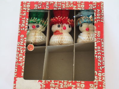 Title (ebay affiliate link): 3 Vintage Honeycomb Snowman Christmas Ornament-Japan