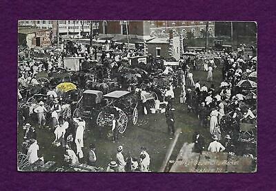 1917 POSTCARD CITY MARKET DAY ROCKFORD IL HORSES WAGONS UMBRELLA DRINK COCA COLA