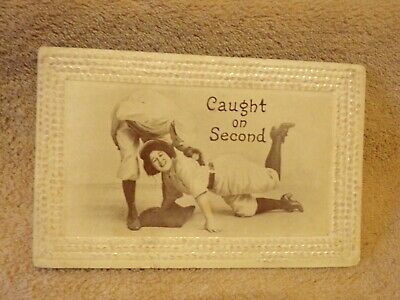 Title (ebay affiliate link): Vintage Postcard Caught On Second, Baseball Player And Woman