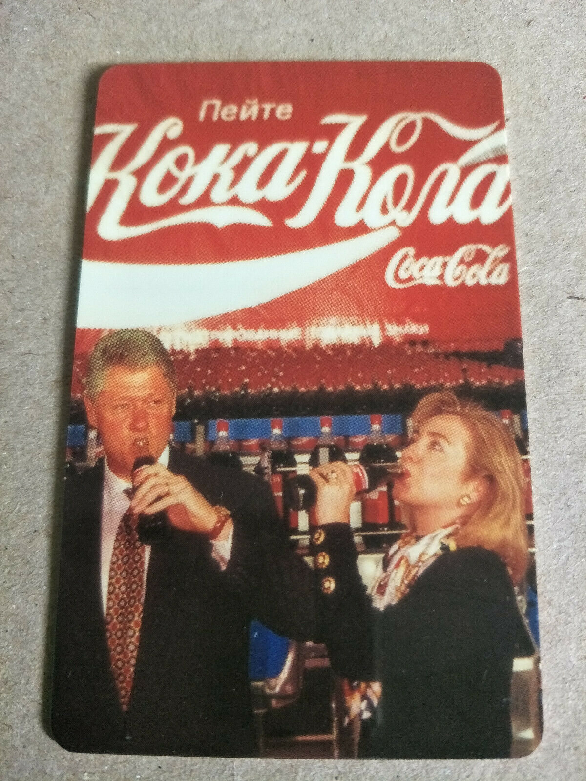 Title (ebay affiliate link): Mint US Sprint 10 Unit Phonecard Bill and Hilary Clinton Drinking Coca Cola