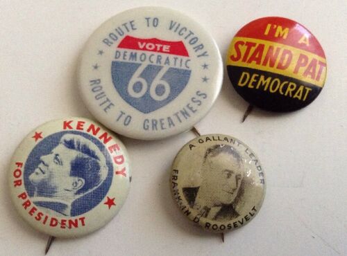 Title (ebay affiliate link): 4 Lot Kennedy Route 66 Franklin Roosevelt FDR campaign pin button political