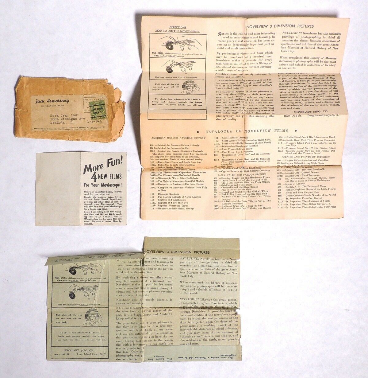 P093 Lot of 4: NOVELVIEW & MOVIESCOPE Instructions, Catalog Jack Armstrong 1950s
