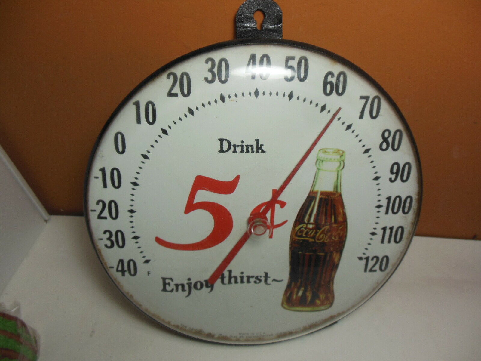 Vintage Coke COCA-COLA ROUND TIN THERMOMETER OHIO JUMBO DIAL