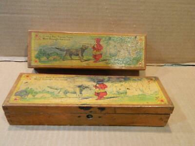 2 Antique Little Red Riding Hood Wood Pencil Boxes