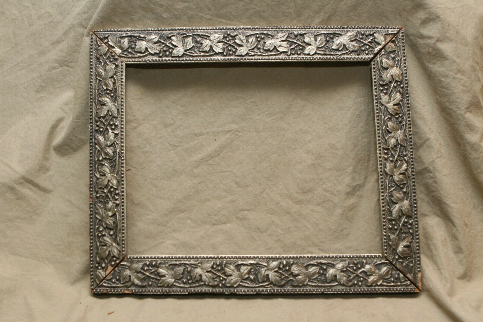 Antique 19th C 2" Gesso Cast Silver Ivy Picture Frame for 11x14" art mirror