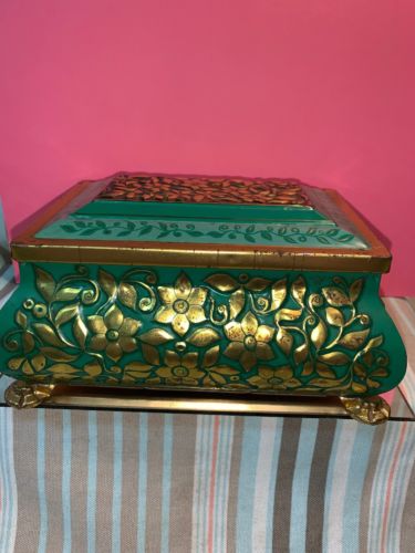 Vintage Metal Fricke & Nacke Tin Vanity Trinket Box WEST GERMANY Footed