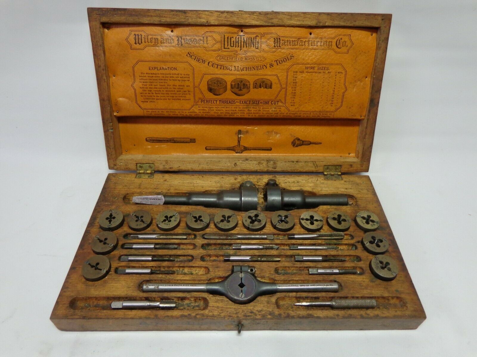 vintage Wiley & Russell lightning screw plate tap & die set (A)