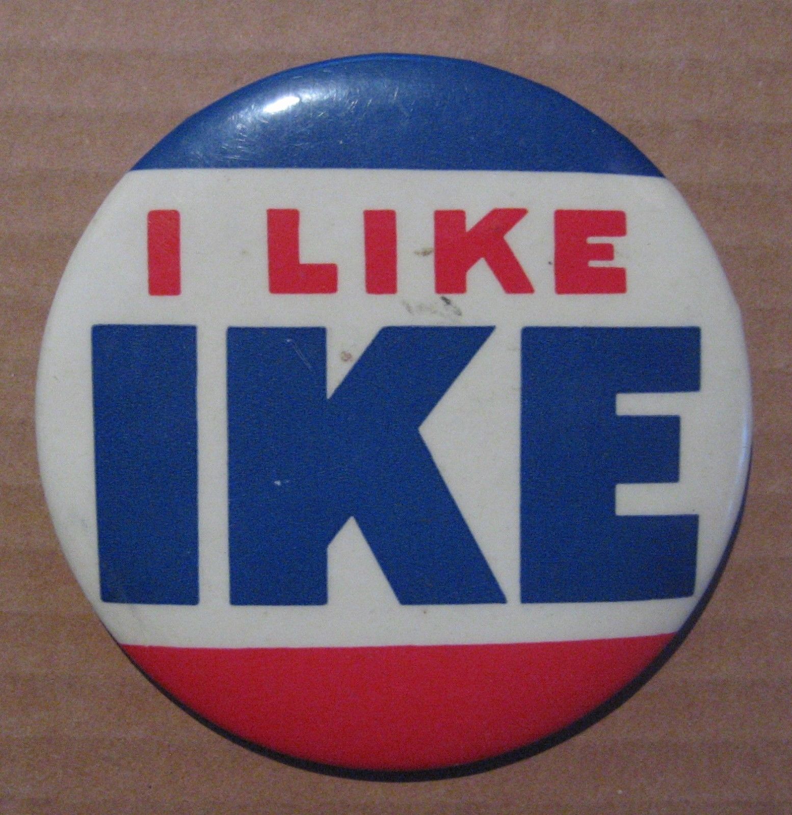 Title (ebay affiliate link): I LIKE IKE Pin / Button 3 1/2" Nice Take a Look