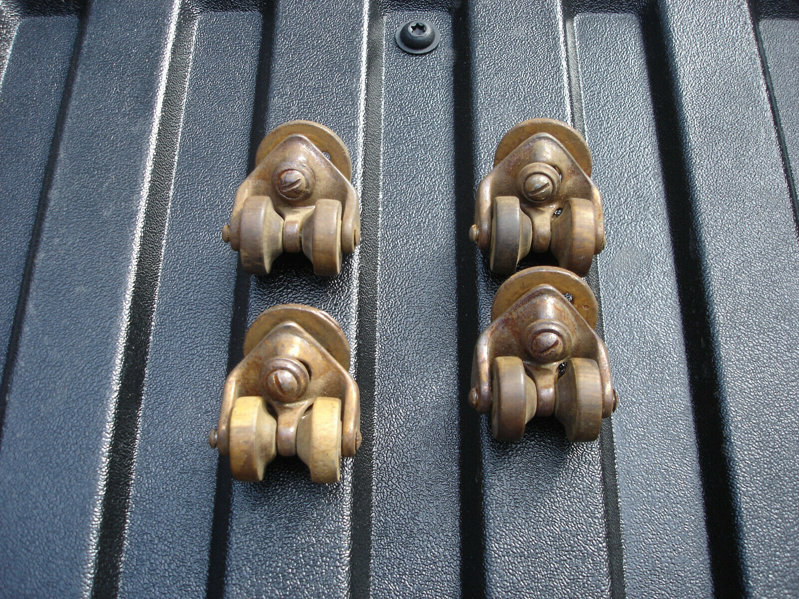 Title (ebay affiliate link): PHOENIX CASTER CO. LOT OF FOUR OLD METAL AND WOOD CASTERS