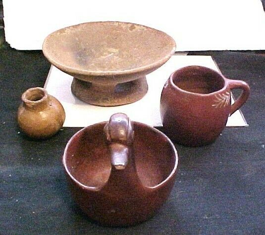 Title (ebay affiliate link): 4 PIECES PRE-COLUMBIAN POTTERY FOOTED BOWL, DECORATED POT & MUG, SWAN BOWL