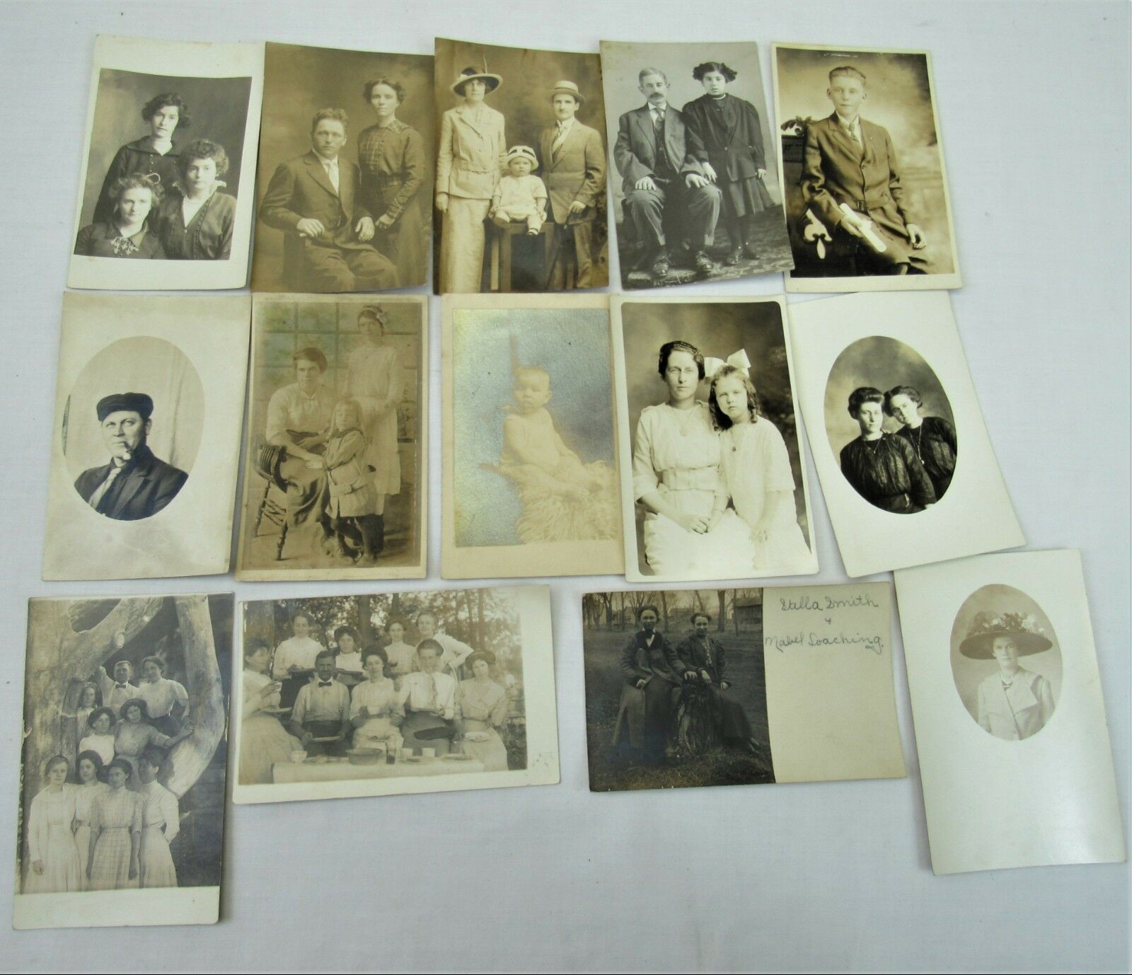 14 Real photo Postcards portraits families c1910 RPPC unposted posted variety
