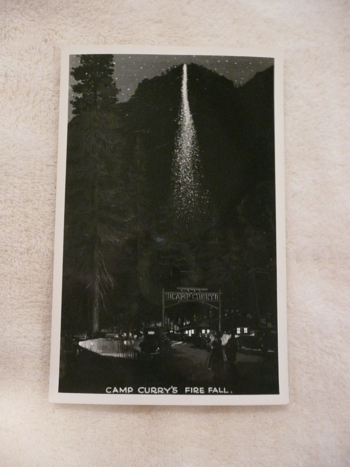Title (ebay affiliate link): RPPC "Camp Curry''s Fire Fall Yosemite CA Waterfall 1910/1920''s unposted postcard