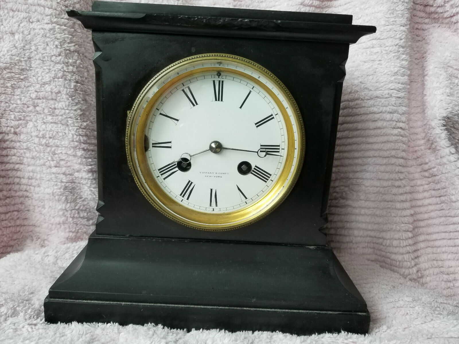 Title (ebay affiliate link): Antique Vintage Tiffany & Co Black Slate 1920s Mantle Clock