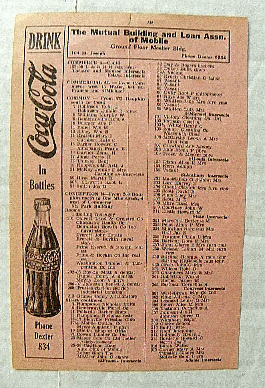 Title (ebay affiliate link): 1926 MOBILE, AL "COCA-COLA IN BOTTLES (DATED NOV.6,1915)" PAGE FROM PHONE BOOK